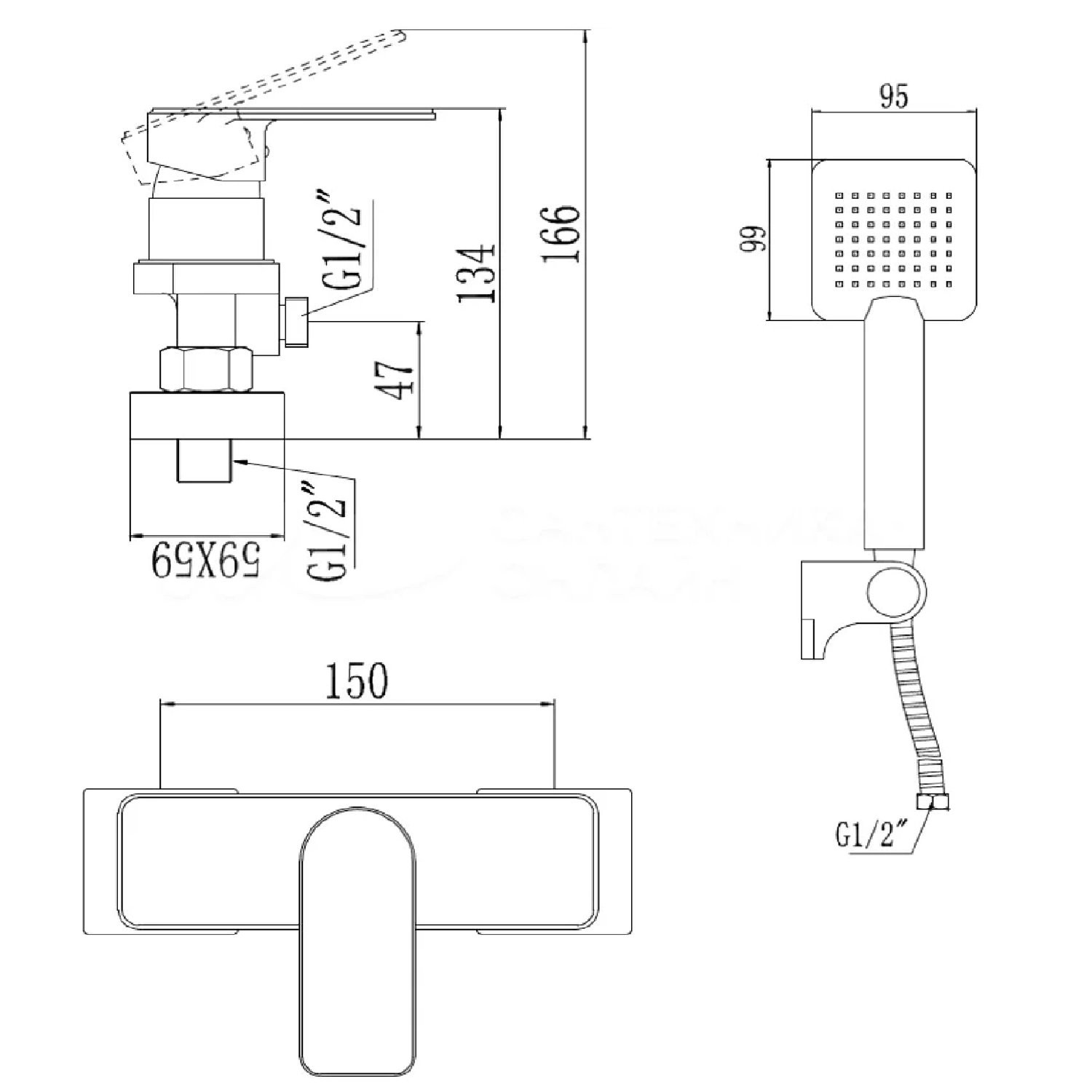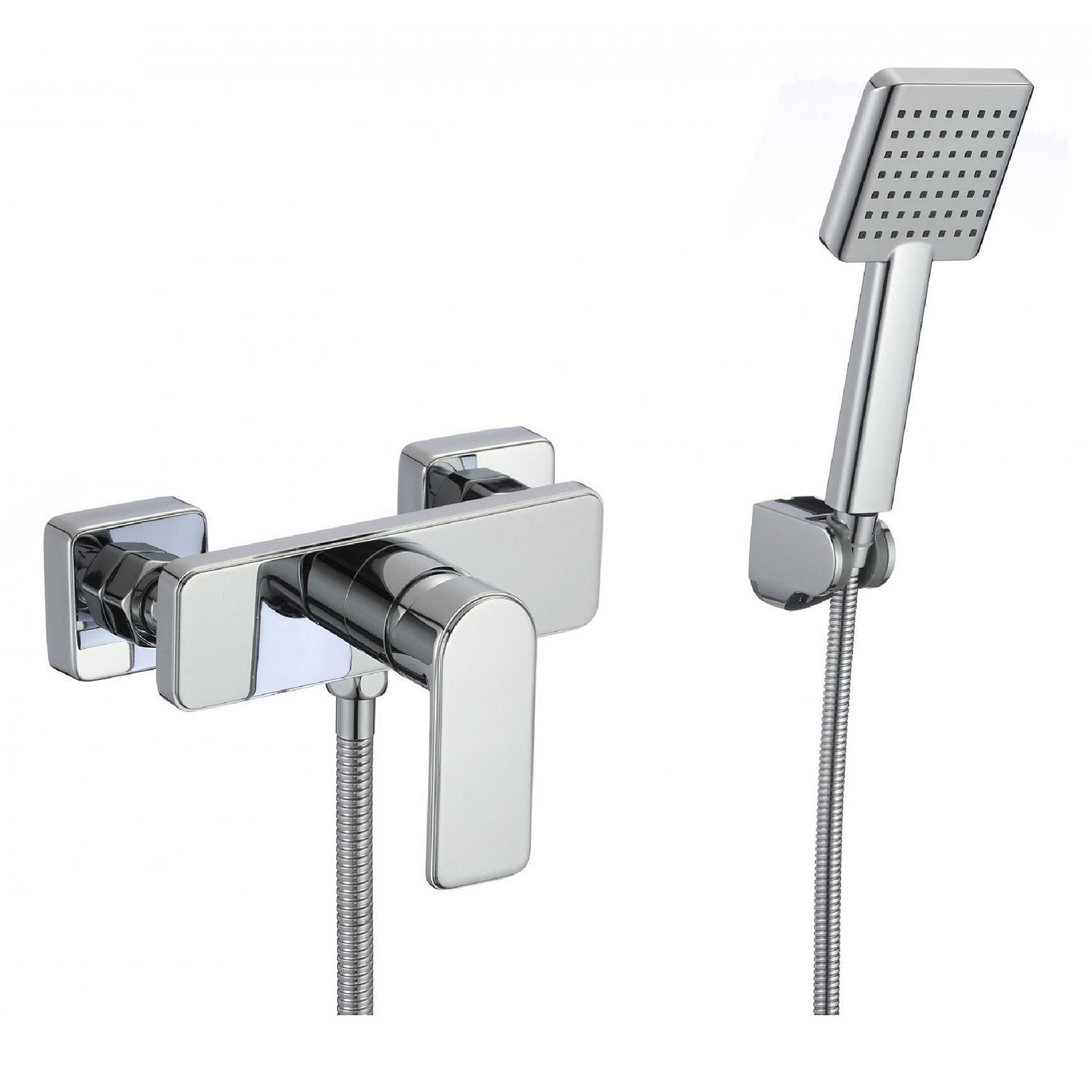 Комплектация: смеситель, душевая лейка, шланг, эксцентрики, настенный держатель;