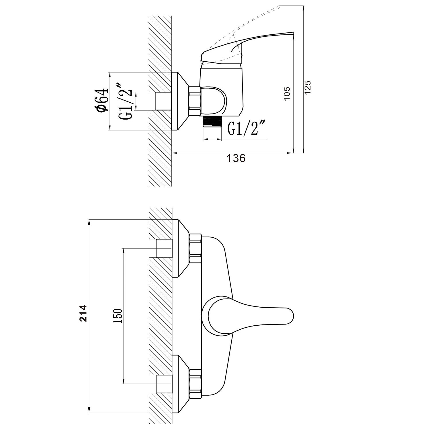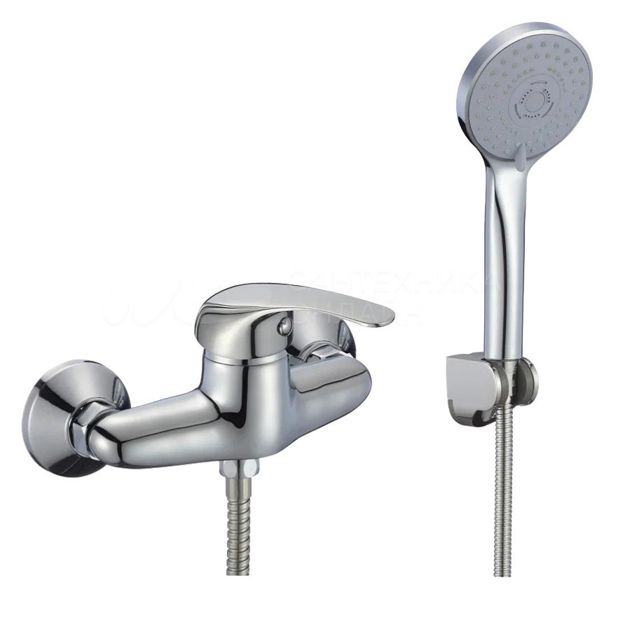 Комплектация: смеситель, душевая лейка, шланг, эксцентрики, настенный держатель;
