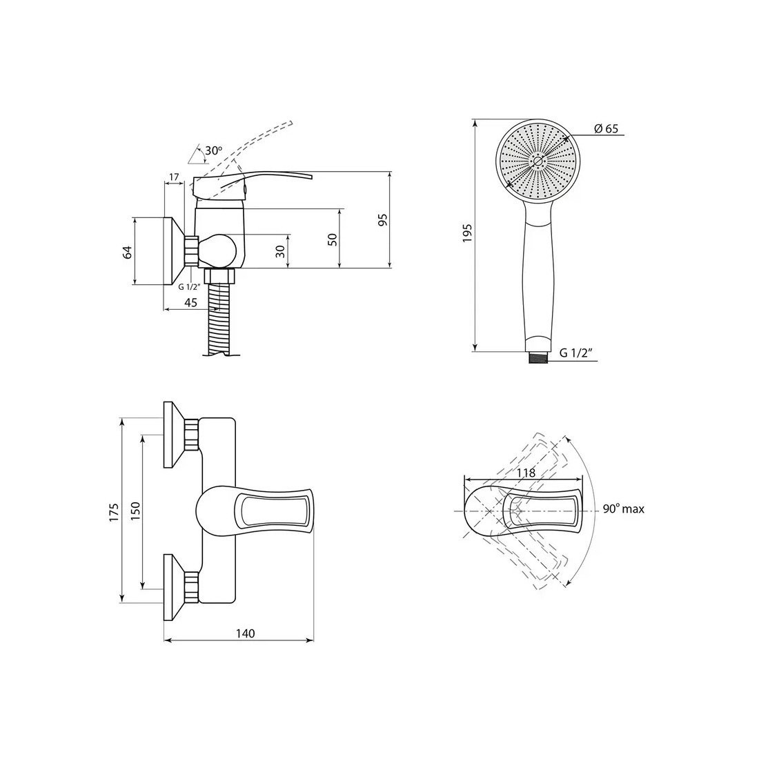 Комплектация: смеситель, лейка, шланг, держатель лейки, эксцентрики, декоративные отражатели;