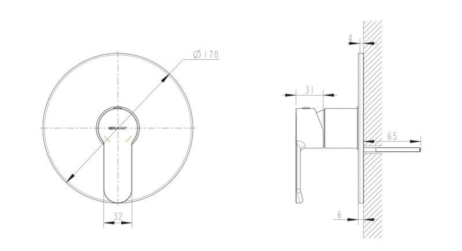 Смеситель для душа встраиваемый на 1 потока Bravat New Moon PB839103CP-RUS, хром. Внутренняя часть (артикул: D999CP-ENG) приобретается отдельно! Душевой гарнитур в комплекте: нет.