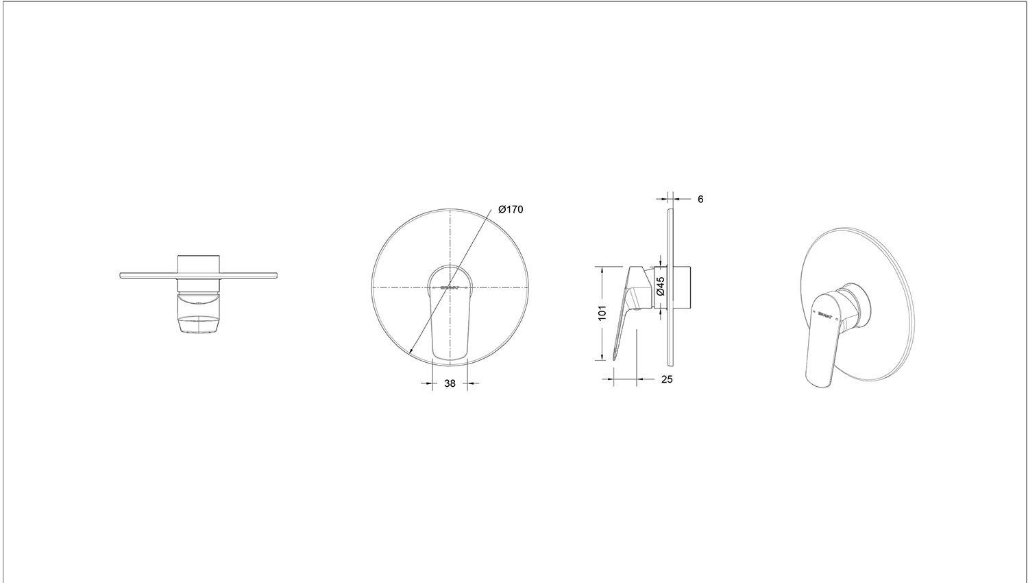 Смеситель для душа встраиваемый на 1 потока Bravat Rhein PB8429564BW-ENG, черный. Внутренняя часть (артикул: D999BW-ENG) приобретается отдельно! Душевой гарнитур в комплекте: нет.