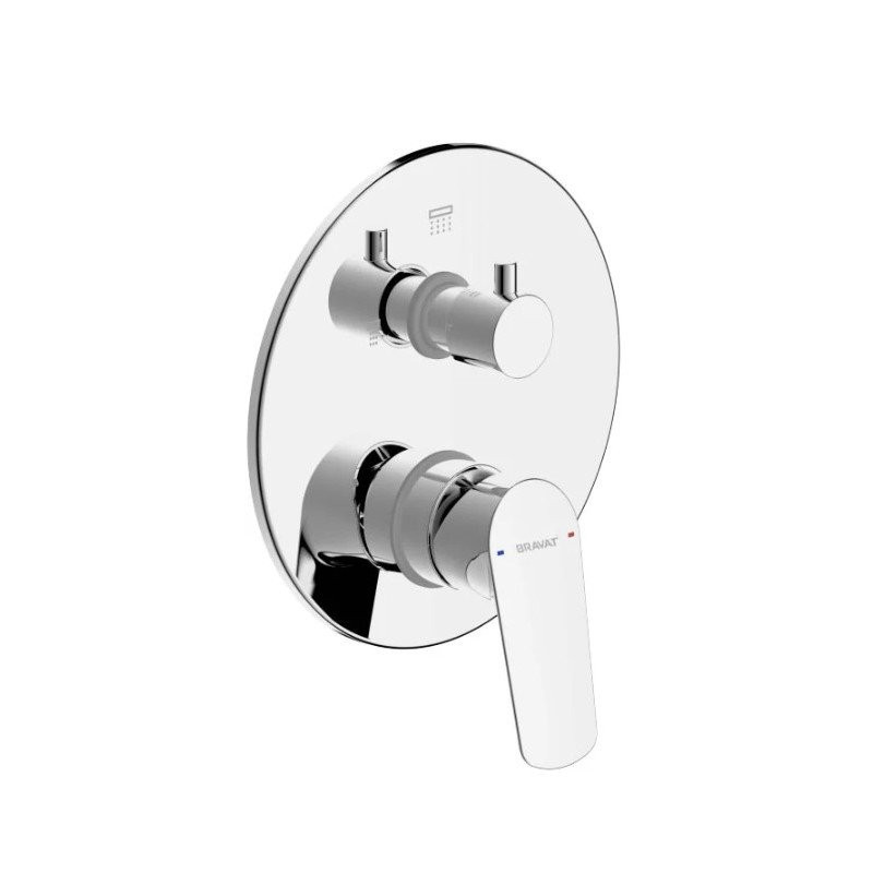 Смеситель для душа встраиваемый на 2 потока Bravat Rhein PB8429564CP-2-ENG, хром