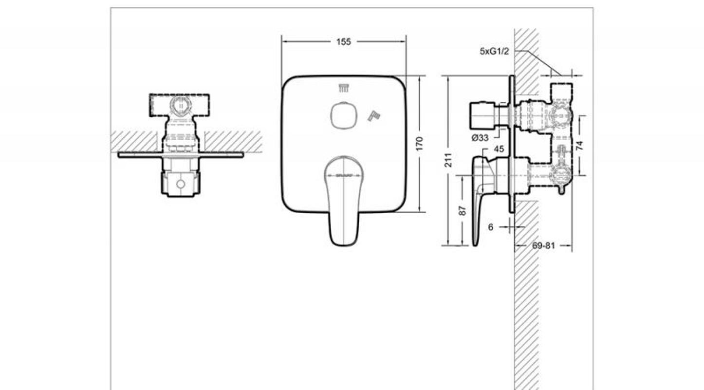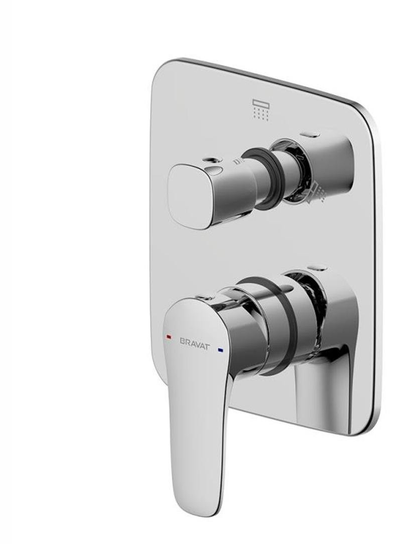 Смеситель для душа встраиваемый на 2 потока Bravat Source PB8173218CP-2-ENG, хром. Внутренняя часть (артикул: D982CP-B-ENG) приобретается отдельно! Душевой гарнитур в комплекте: нет.