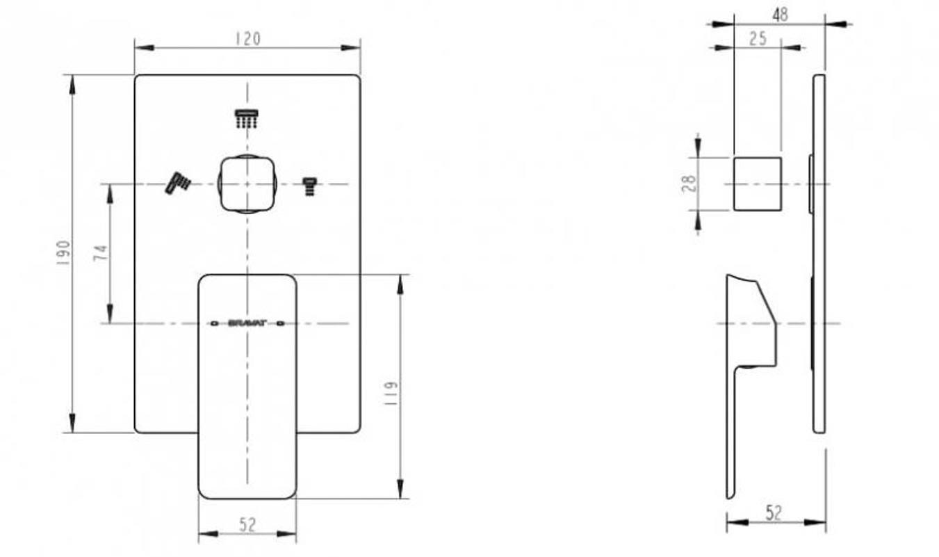 Смеситель для душа встраиваемый на 3 потока Bravat Phillis P69195C-ENG, хром. Внутренняя часть (артикул: D969CP-B-ENG) приобретается отдельно! Душевой гарнитур в комплекте: нет.
