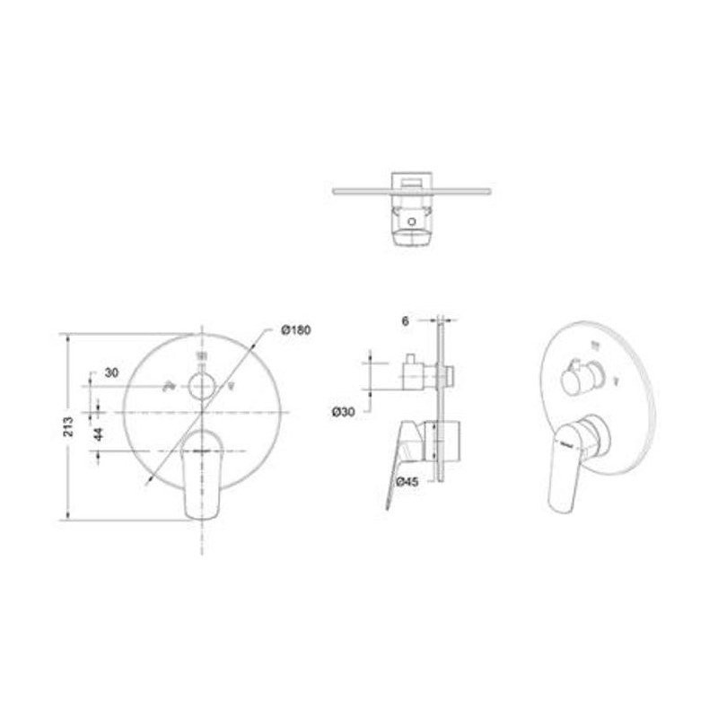 Смеситель для душа встраиваемый на 3 потока Bravat Rhein PB8429564CP-3-ENG, хром. Внутренняя часть (артикул: D969CP-B-ENG) приобретается отдельно! Душевой гарнитур в комплекте: нет.