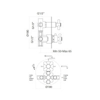 Смеситель для душа встраиваемый Webert Armony с термостатом, на 3 поток. Внутренняя часть в комплекте. Материал: латунь. Стиль ретро.