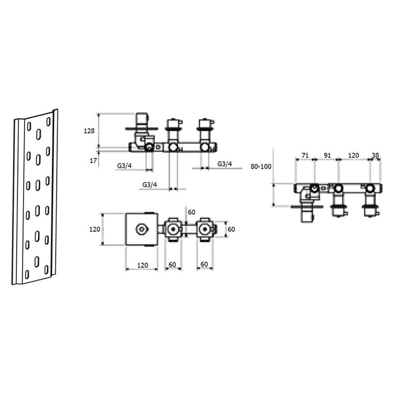 Смеситель для душа термостатический встраиваемый Webert Elio с запорным вентилем, на 2 потока. Внутренняя часть в комплекте. Материал: латунь.