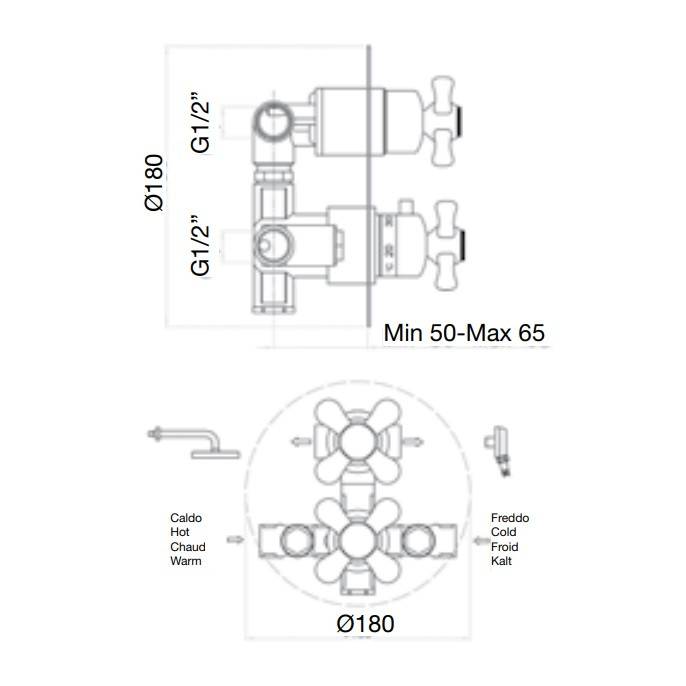 Смеситель для душа термостатический встраиваемый Webert Ottocento, на 2 потока. Внутренняя часть в комплекте. Материал: латунь.