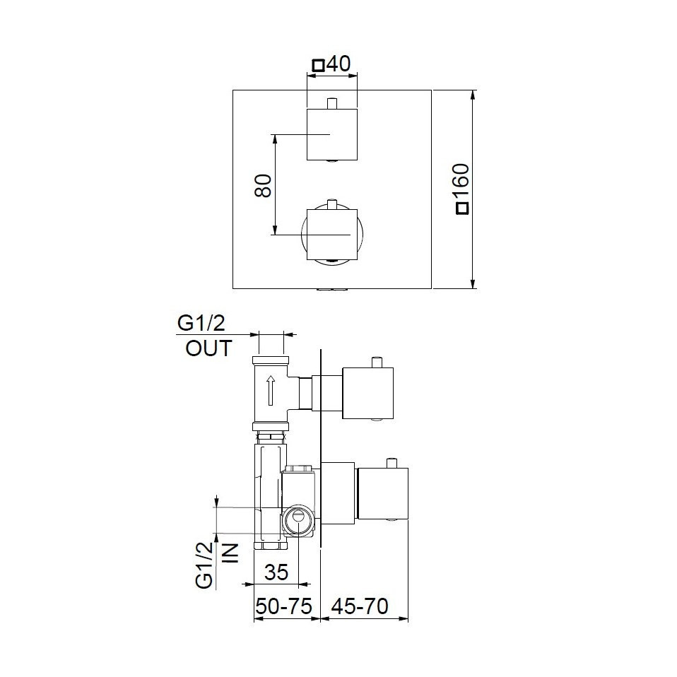 Смеситель для душа встраиваемый Webert Pegaso с термостатом, на 1 поток. Внутренняя часть в комплекте. Материал: латунь.