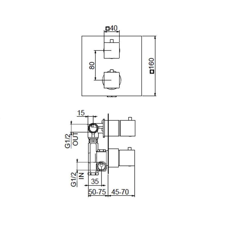 Смеситель для душа встраиваемый Webert Pegaso с термостатом, на 2 потока. Внутренняя часть в комплекте. Материал: латунь.