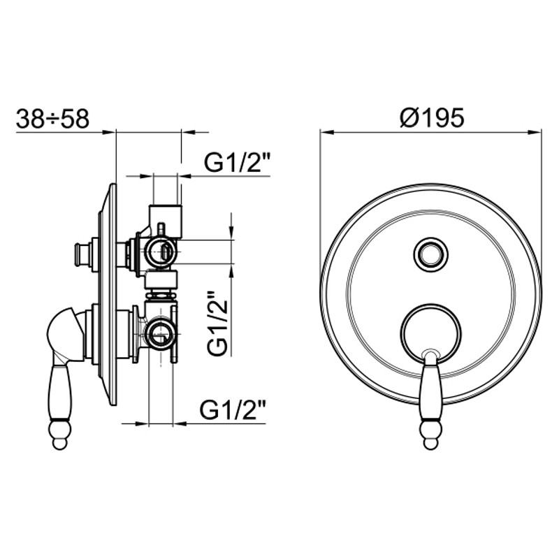 Смеситель для душа Webert Dorian встраиваемый в стиле ретро. Изготовлен на заводе в Италии из высококачественной латуни. На 2 потребителя (2 потока) с девиатором.