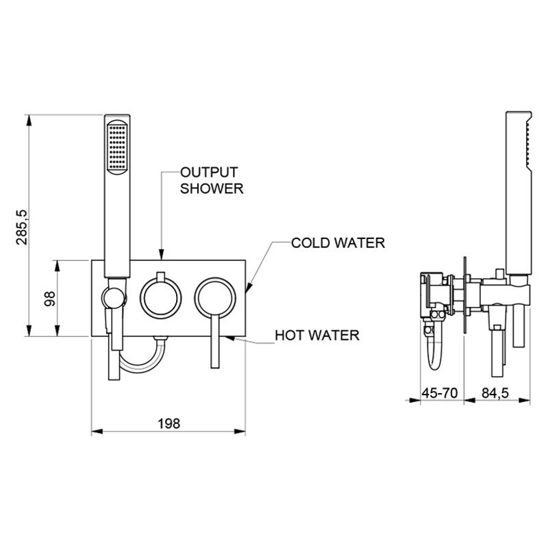 Смеситель для душа встраиваемый Webert Elio с душевым гарнитуром, на 2 потока. Внутренняя часть в комплекте. Материал: латунь.