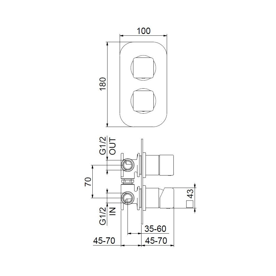 Смеситель для душа встраиваемый Webert ONE-X с девиатором, на 2 потока. Внутренняя часть в комплекте. Материал: латунь.