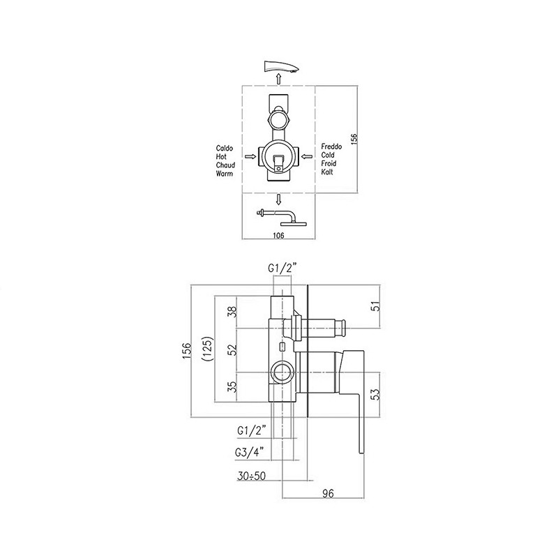 Смеситель для душа встраиваемый Webert Pegaso с девиатором, на 2 потока. Внутренняя часть в комплекте. Материал: латунь.
