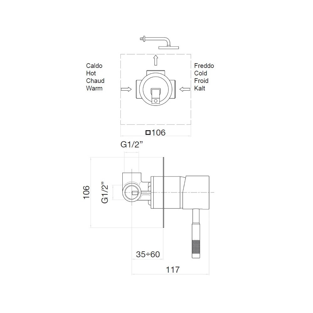 Смеситель для душа встраиваемый Webert Rimini, на 1 поток. Внутренняя часть в комплекте. Материал: латунь.