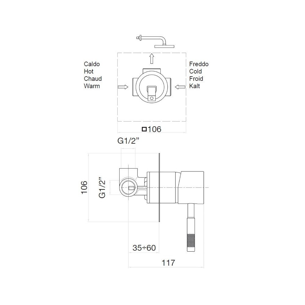 Смеситель для душа встраиваемый Webert Rimini, на 1 поток. Внутренняя часть в комплекте. Материал: латунь.