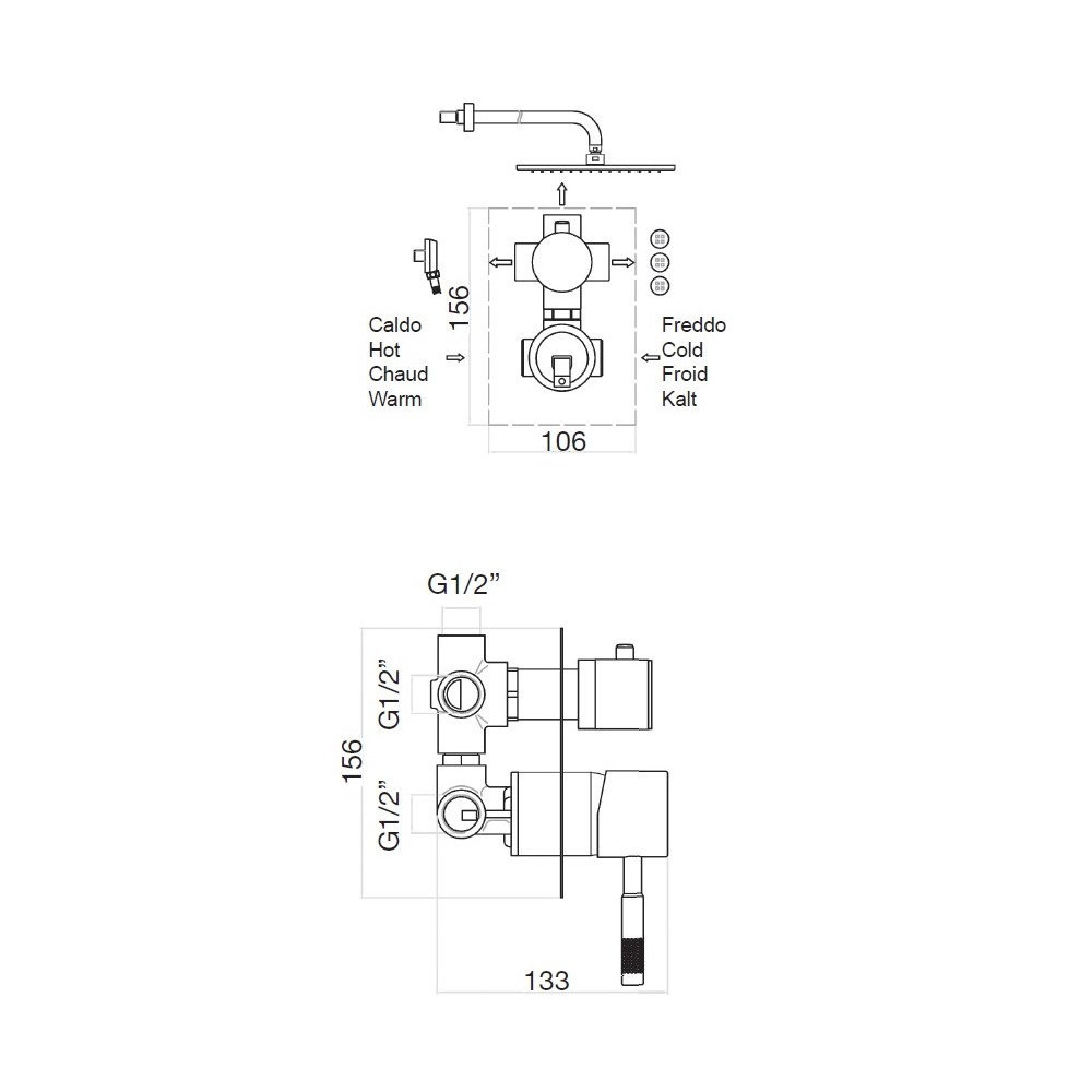 Смеситель для душа встраиваемый Webert Rimini с девиатором, на 3 потока. Внутренняя часть в комплекте. Материал: латунь.