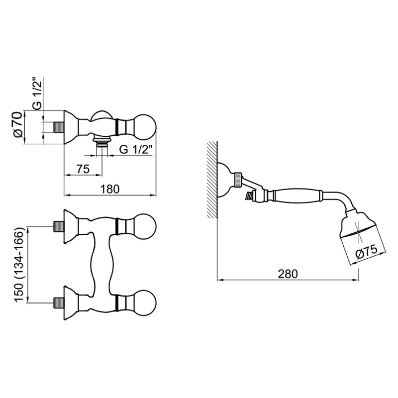Смеситель для душа Webert Karenina с кристалами Swarovski©. Стиль ретро. Материал: латунь.