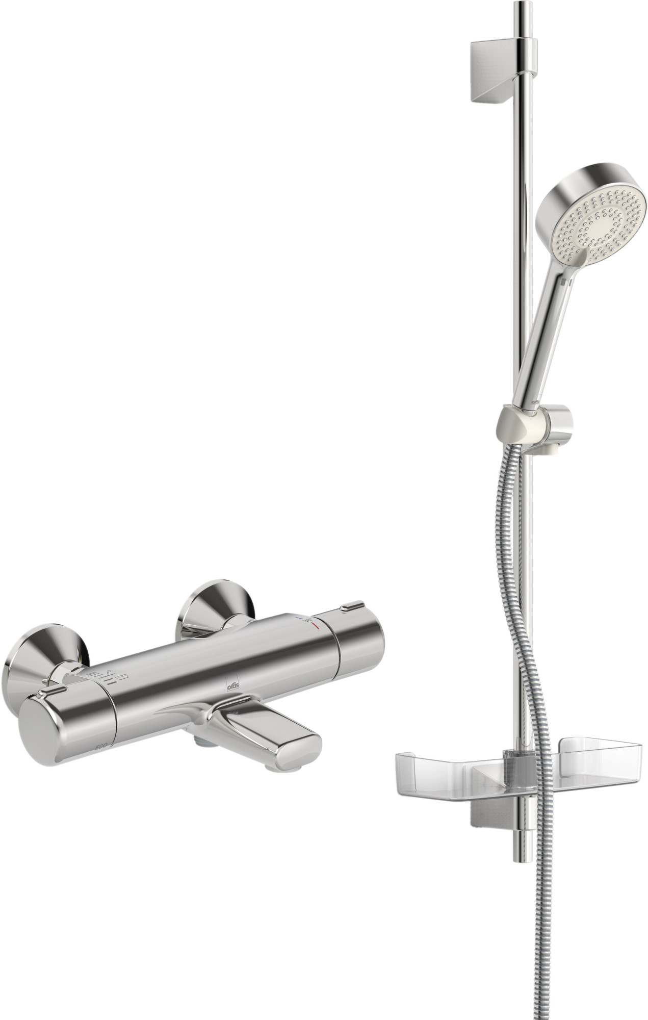 Душевой комплект Oras Apollo с 3-режимным ручным душем с функцией EcoFlow, регулируемой по высоте штангой макс. длина 720 мм, мыльницей и шлангом 1750 мм