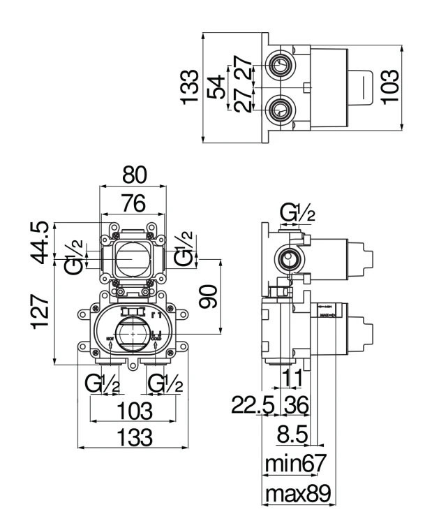WE00102 термостатический смеситель для душа (скрытая часть)