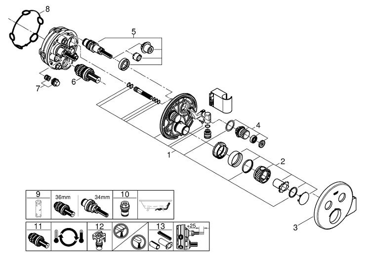 29120000 Grohtherm SmartControl Внешняя часть термостатического смесителя на 2 выхода со встроенным держателем ручного душа, хром