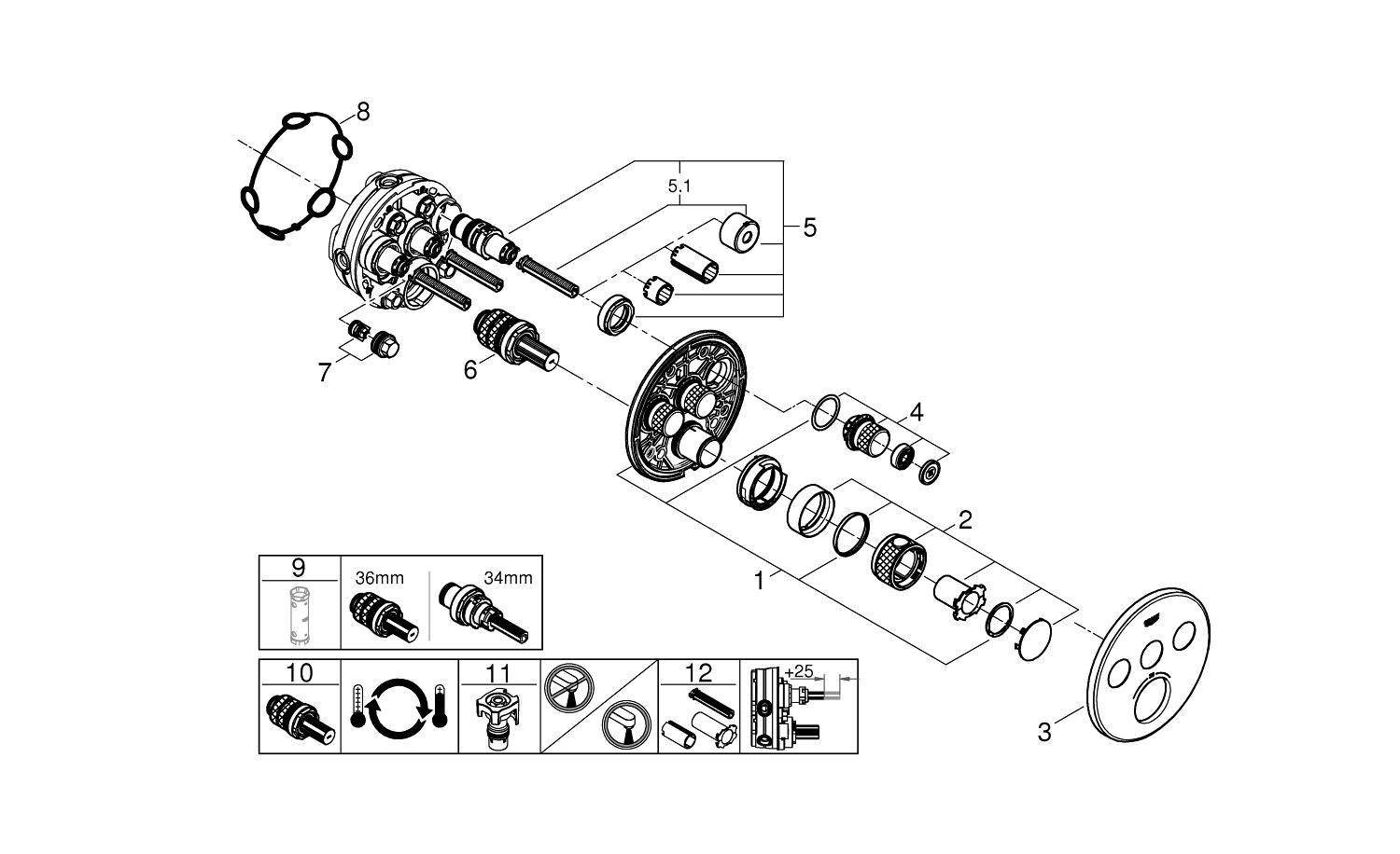 29121000 Grohtherm SmartControl Внешняя часть термостатического смесителя на 3 выхода, хром