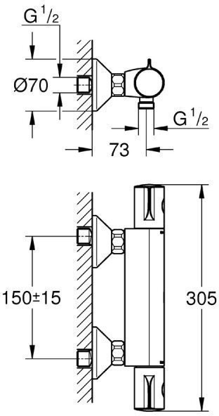 34558000 Grohtherm 800 Термостат для душа 1/2", настенный монтаж, хром