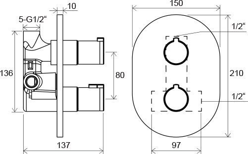 Смеситель термостатический скрытого монтажа Chrome без переключателем CR 064.00 (ВМЕСТО X070048)
