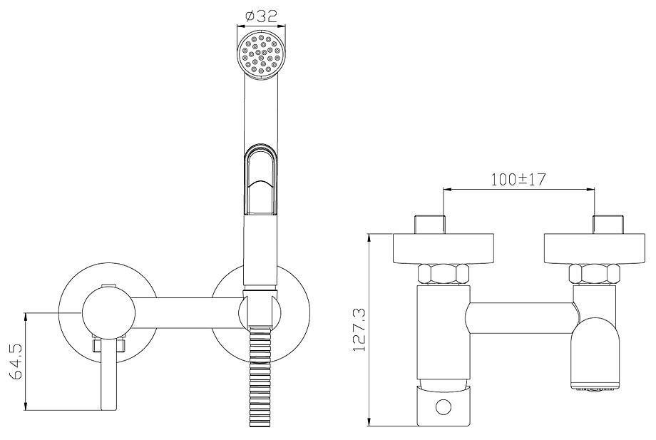 X25-52 Смеситель одноручный (25 мм) с гигиеническим душем, хром