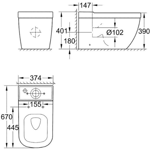 3933800H Euro Ceramic Унитаз напольный безободковый с гигиеническим покрытием (без бачка и сиденья), альпин-белый (6 шт пал - 126337)
