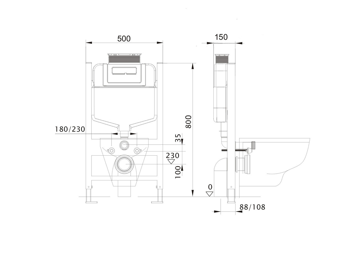 INS-0000018 Aquatek Монтажная рама для подв унитаза 800*500*150 с верхней кнопкой смыва (совместима только с панелями TDI)