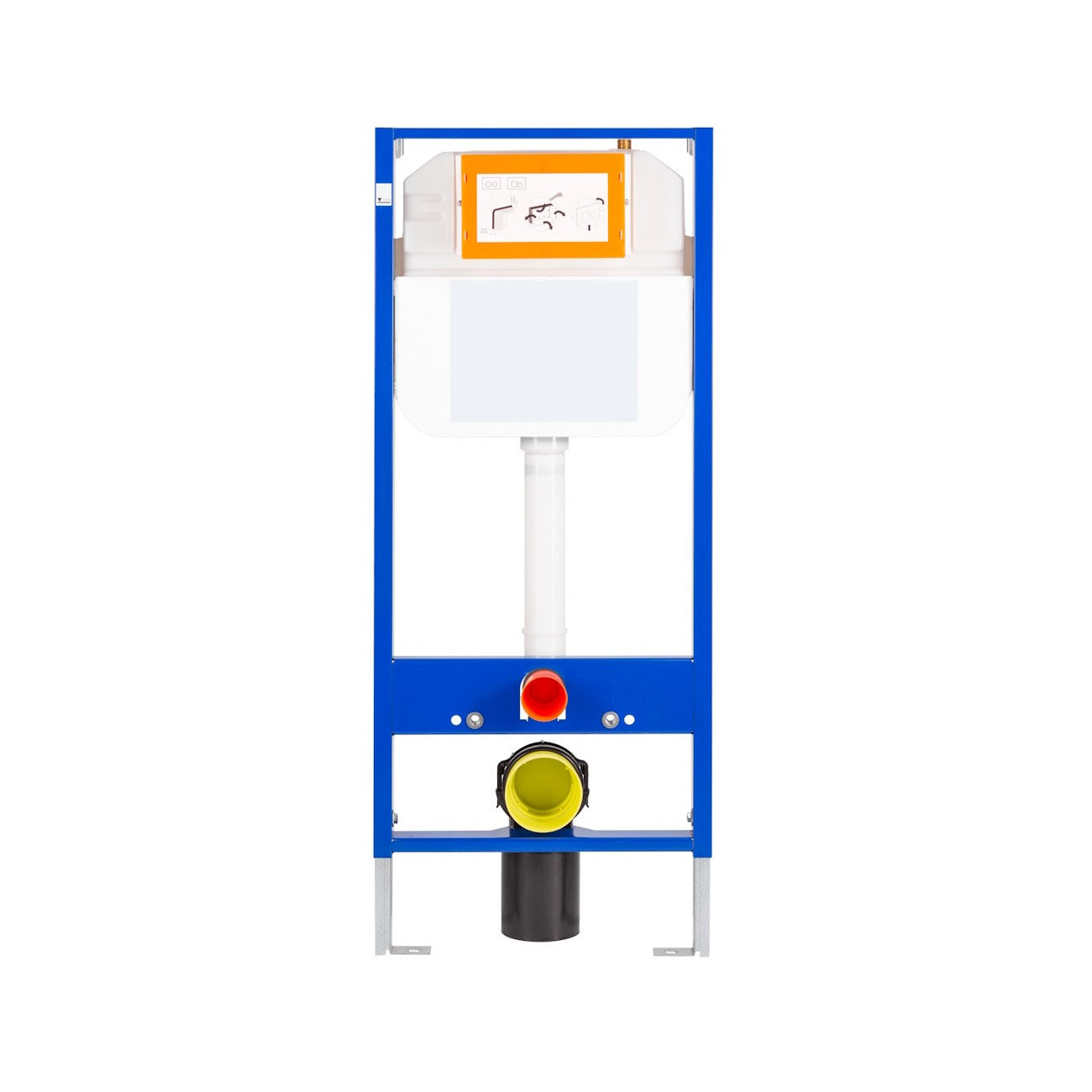 Монтажная рама изготовлена из стального профиля толщиной 2 мм, что гарантирует прочность и стабильность конструкции. Универсальный монтаж позволяет установить инсталляцию для подвесного унитаза с межосевым расстоянием 180 или 230 мм. Благодаря низкому уровню шума заливного клапана (менее 20 дБ) использование инсталляции будет комфортным и приятным.