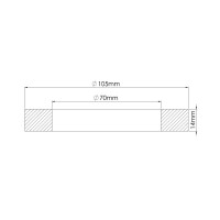 Уплотнительная прокладка между бачком и унитазом. Диаметр прокладки 105 мм. Внутренний диаметр 70 мм. Сысота 14 мм.