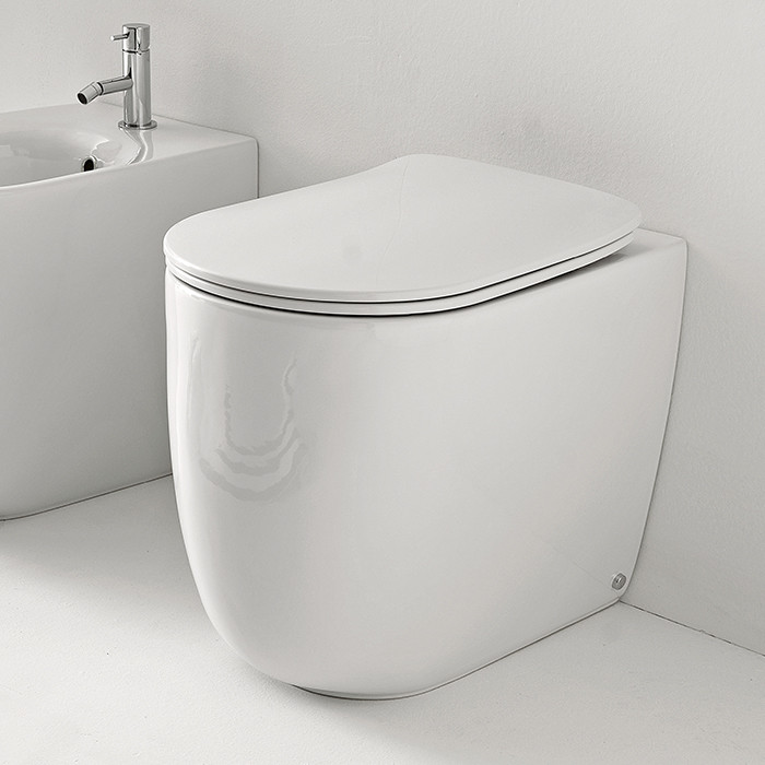 Унитаз безободковый пристенный 55х35 см, с креплениями WB5N, цвет: белый глянцевый