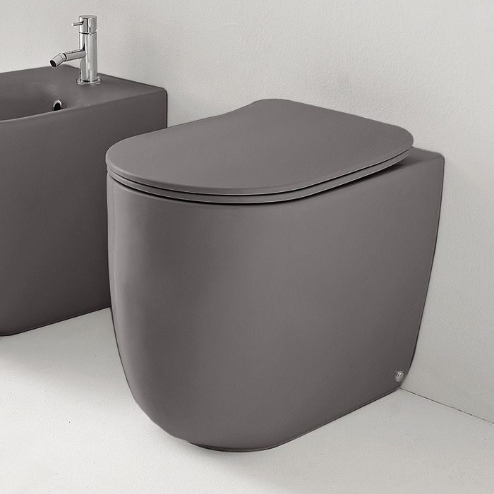 Унитаз безободковый пристенный 55х35 см, с креплениями WB5N, цвет: Ferro matt