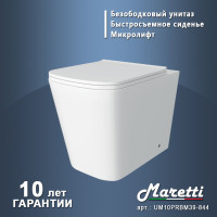 Унитаз приставной Maretti Umbria безободковый с микролифтом, UM10PRBM39-844, белый - идеальный выбор для тех, кто ценит комфорт и стиль в ванной комнате. Благодаря приставному монтажу, он легко впишется в любое помещение и позволит сэкономить место. Безободковая конструкция облегчает уборку и повышает гигиеничность, а система антивсплеск предотвращает неприятные брызги. Антигрязевое покрытие предотвращает скопление бактерий и грязи, а быстросъемная крышка-сиденье с микролифтом обеспечивает плавное опускание. Созданный из высококачественного санфарфора унитаз отличается прочностью и долговечностью, а гарантия на 10 лет подтверждает его надежность..