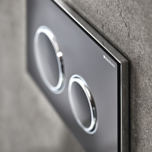 115.884.SJ.1 Смывная клавиша Geberit Sigma21, двойной смыв к 111.300/350/361/362/380/390/796 : стекло чёрное, глянцевый хром