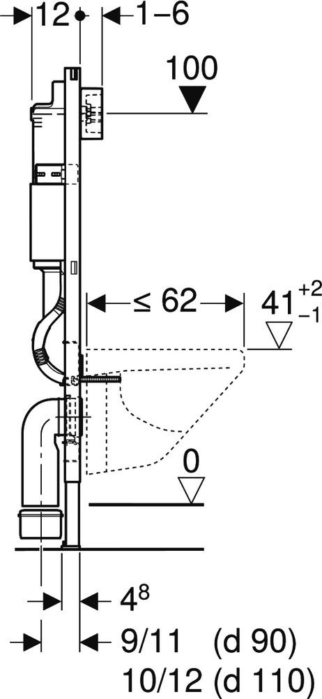 458.118.21.2 Инсталляция Geberit Duofix для подвесного унитаза, 112 см, со смывным бачком Delta 12 см, смывная клавиша Delta20 хром глянцевый