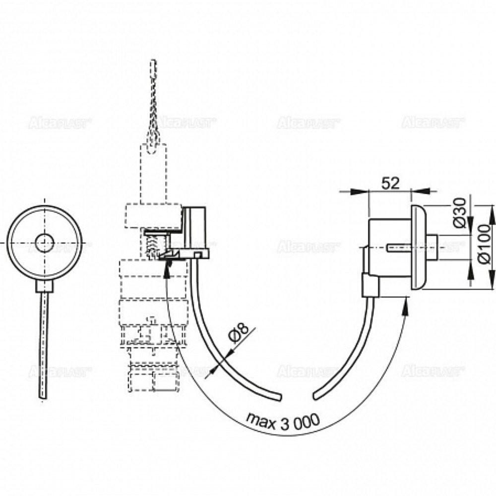 Кнопка пневматического смыва на расстоянии – ручное управление, белая, монтаж: в стену, арт. MPO10