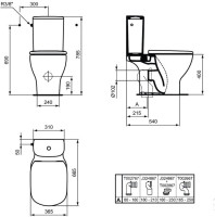 T008701 TESI AquaBlade® Напольный унитаз для монтажа с бачком, горизонтальный выпуск, глубокий смыв, сидение и крышка заказывается доп, с крепежом