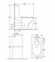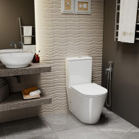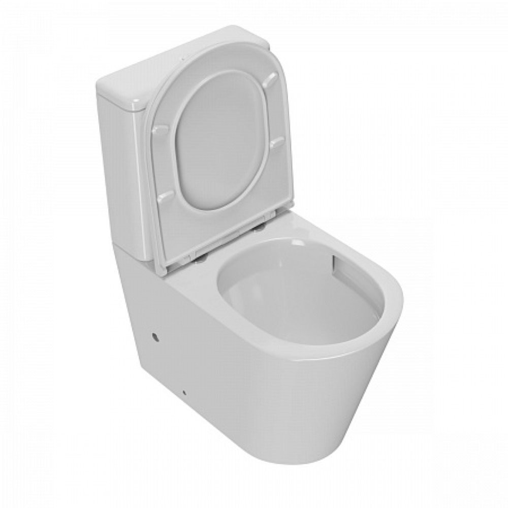 унитаз керамический безободковый; бачок смывной керамический с нижним подводом воды; двухуровневый спускной механизм; сиденье для унитаза из дюропласта легкосъемное с функцией плавного закрывания; монтажный комплект; инструкция/гарантийный талон