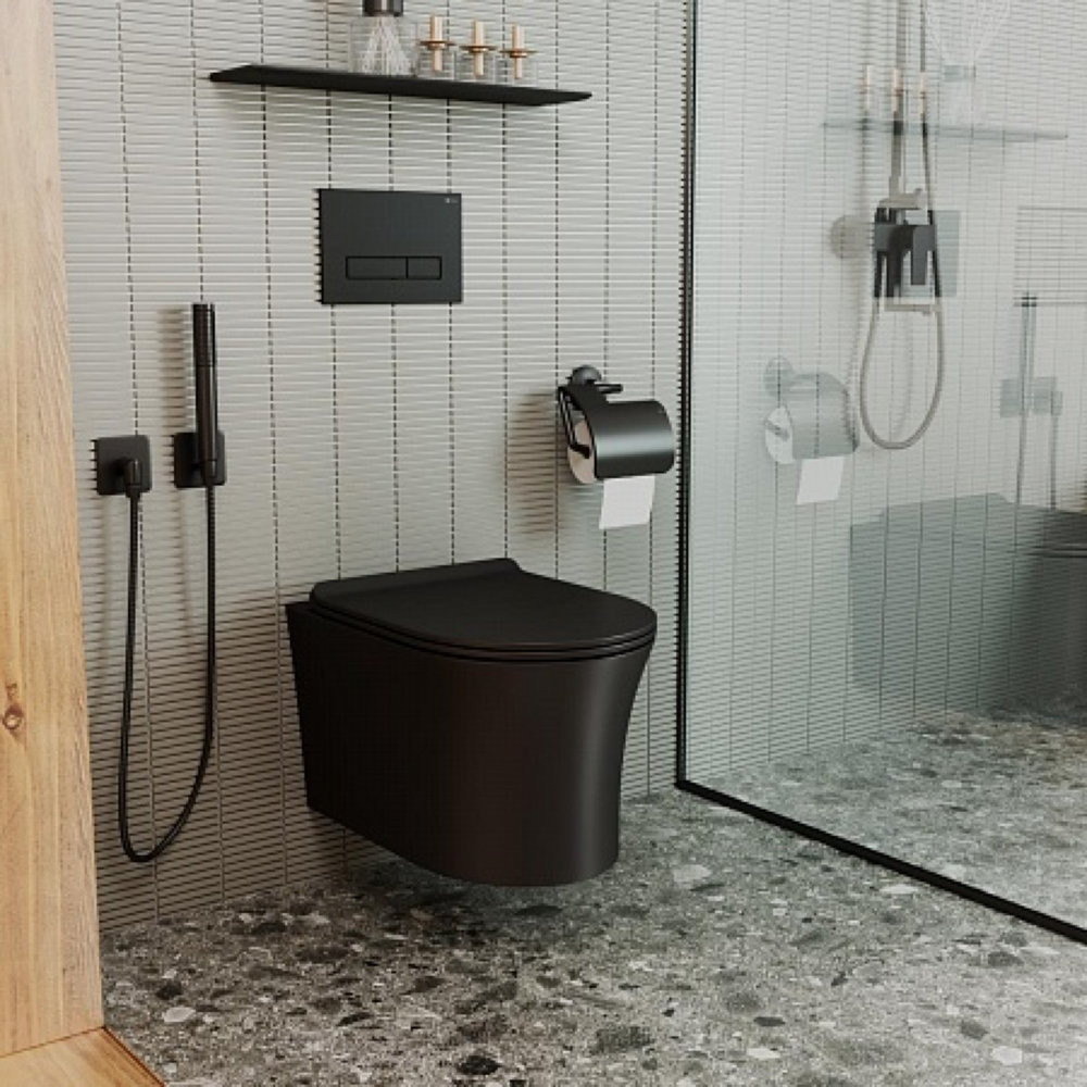 Унитаз подвесной Point Вега безободковый, черн мат сиденье дюропласт микролифт быстросъем PN41711BM