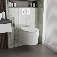 унитаз настенный керамический безободковый; сиденье для унитаза из дюропласта ультратонкая легкосъемная с функцией плавного закрывания; инструкция/гарантийный талон