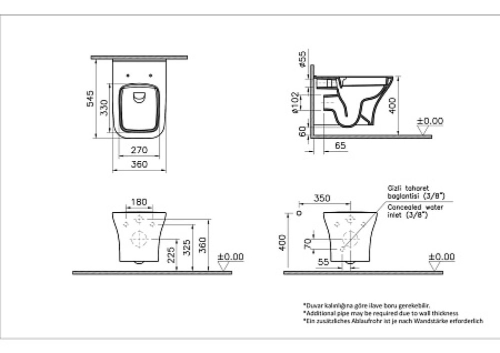 Унитаз Vitra Zentrum Square 7484B003-0075, подвесной, безободковый