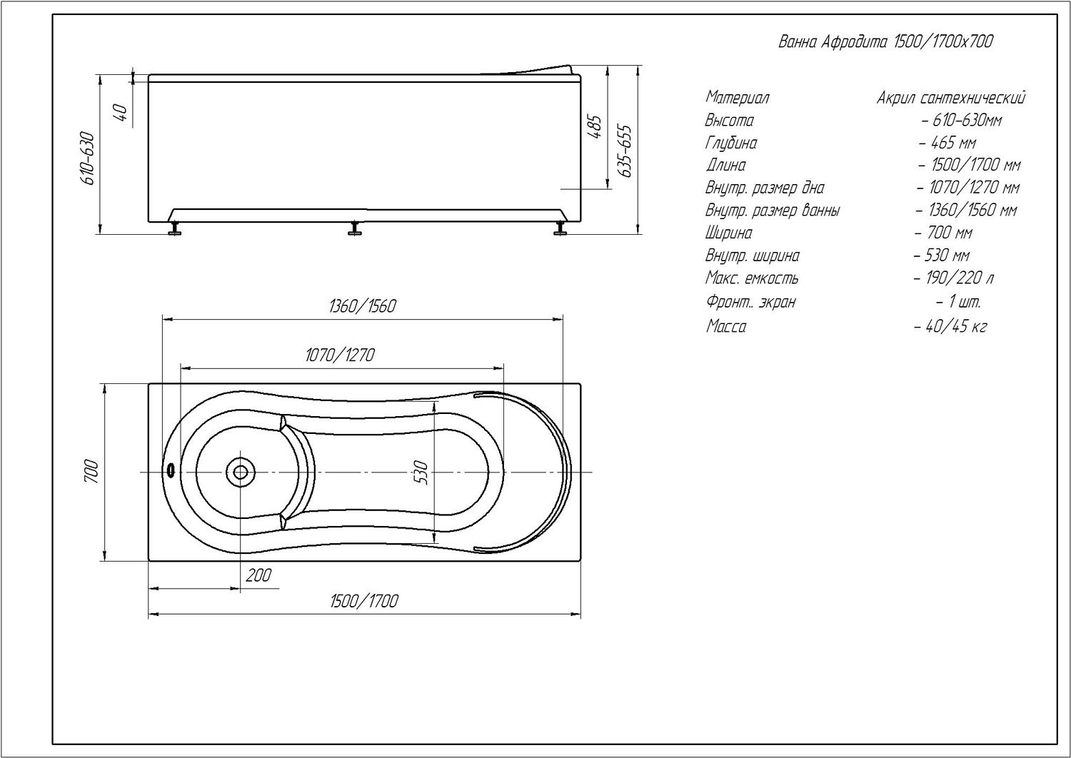 Афродита 170 пустая с фр.экр. (слив слева)