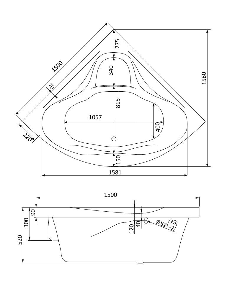 1.WH30.2.399 САН-ПАУЛУ 150х150 ванна симметричная акриловая белая