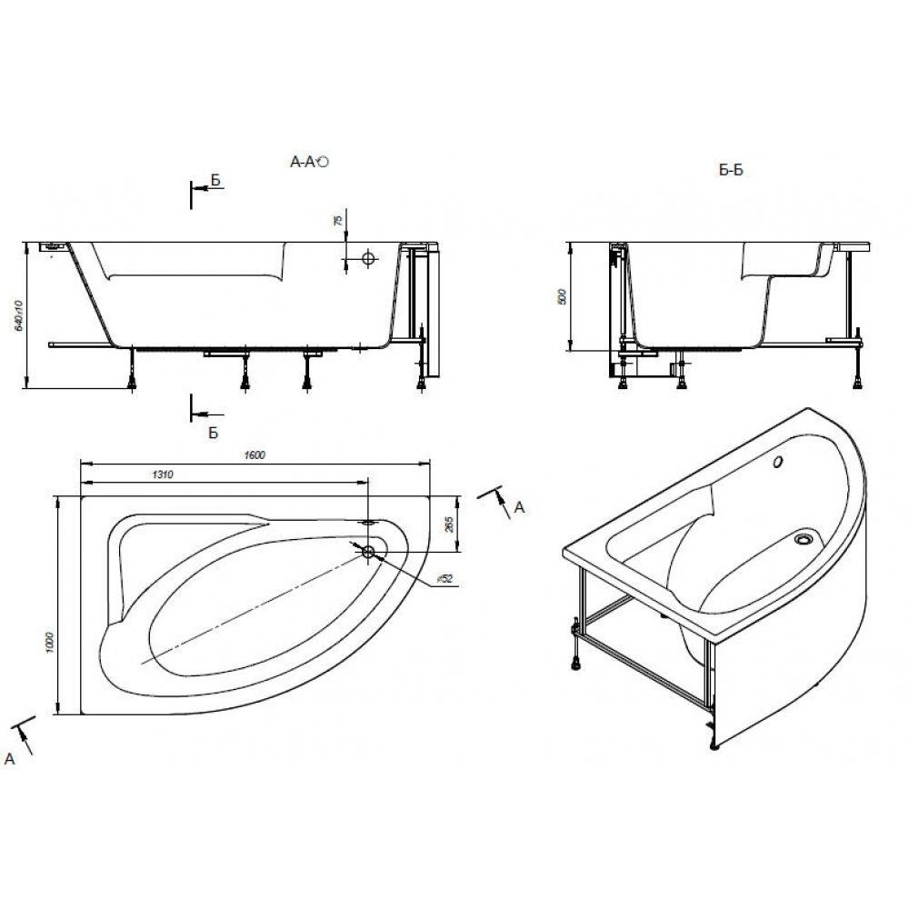 248642000 WELNA акриловая ванна асимметричная 160х100 левая бел (монтажный комплект заказывается отдельно)