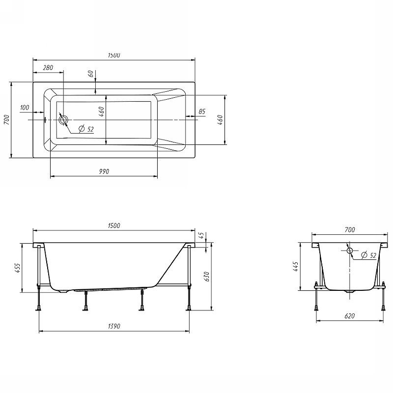 248659000 LEON акриловая ванна прямоугольная 1500x700 мм, белый