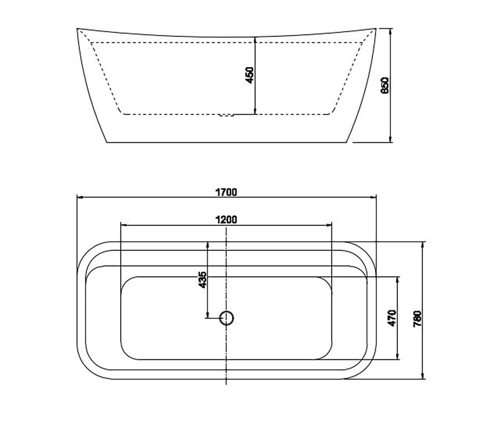 AQ-197778 АМАДЕО Ванна акриловая, отдельностоящая, 1700*780*650. В комплекте со сливом и ножками. Цвет белый глянцевый.