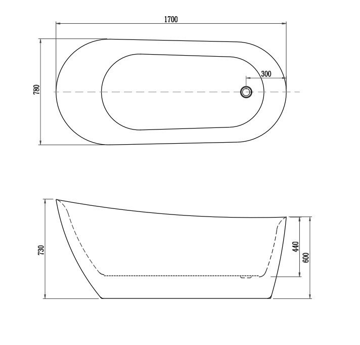 AQ-K133778Wt ЛАГУНА Ванна акриловая, отдельностоящая, 1700*780*710. В комплекте со сливом и ножками. Цвет белый глянцевый.